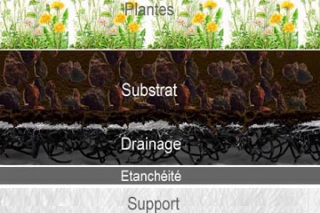 > TOITURE DE TYPE SEMI INTENSIVE = végétation herbacée + sedum