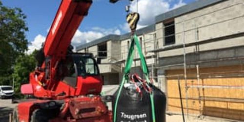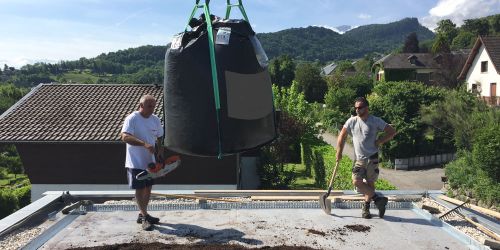 - Utiliser un telescopique ou un engin de levage pour déposer les big bag de substrat de végétalisation sur une toiture.